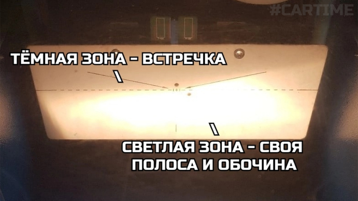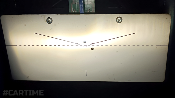Что же могло пойти не так? Поставим перед машиной реглоскоп (прибор для регулировки фар) и посмотрим на этот божественный (нет) свет. Но прежде, напомню как должна светить фара здорового человека.