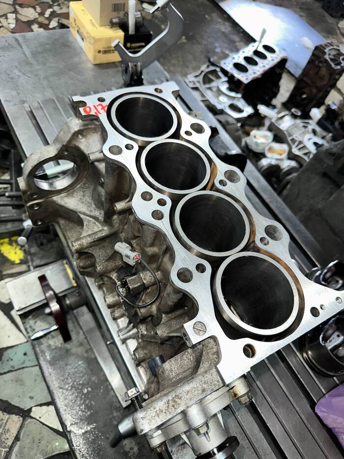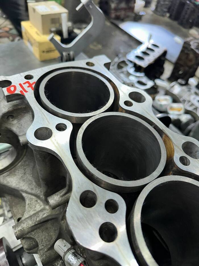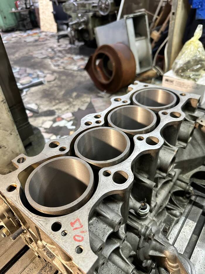 Расточен.Блок цилиндры (гильзы) расточены в нужный размер, далее идет хонинговка.