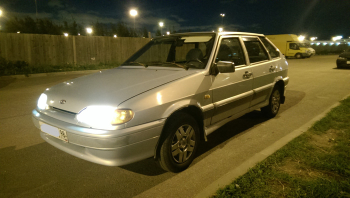 За рулем Опеля был я и впереди меня ехала только что купленная Лада с моим братом за рулём. Эксперимент стартовал с приобретения Лады 2114 на первых фото с небольшим пробегом и за сумму около 60 тысяч. В сумерках позднего вечера оставил её во дворе.
