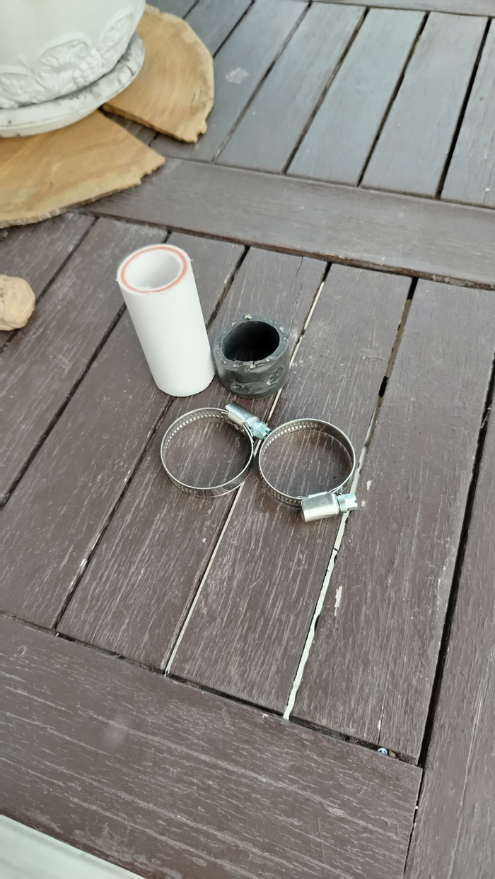 - Кусок трубы ПВХ для горячего водоснабжения ( если чё, проводил испытания. Кипятил ее минут 30 . )))). Ничо. Норм). Не покупал. Осталась после ремонта.